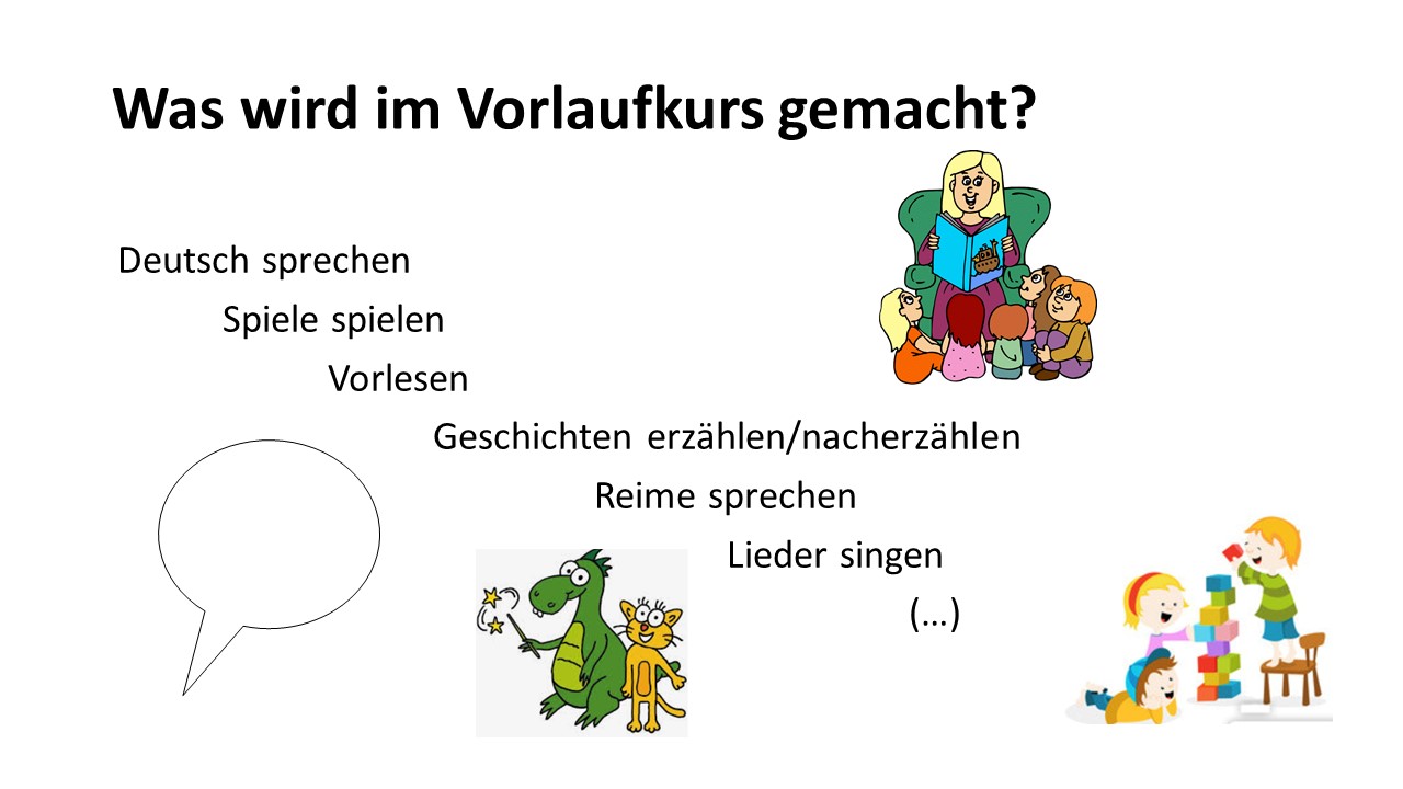 Für die Beurteilung der Sprachentwicklung sowie für die Gruppeneinteilung werden wir mit Ihrem Kind einen kurzen Sprachtest durchführen.