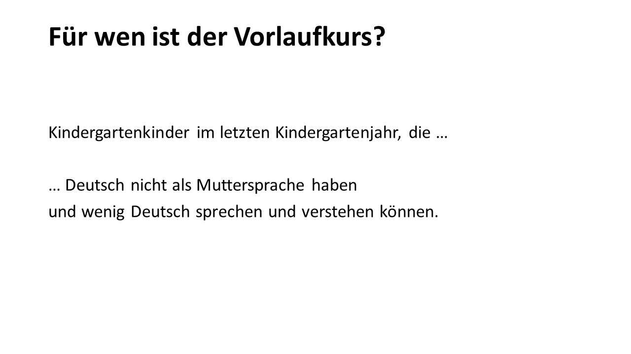 Die Teilnahme am Vorlaufkurs ist verpflichtend!