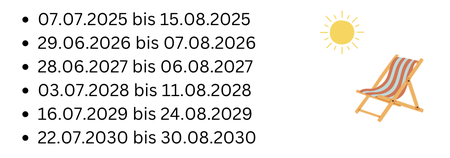 Sommerferientermine des Landes Hessen von 2025 bis 2030