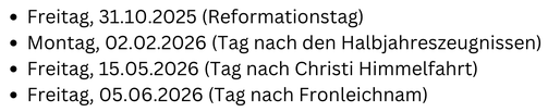 Bewegliche Ferientage im Schuljahr 2025/2026